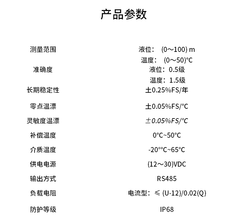 高精度測量:該變送器采用高性能擴散硅壓阻式壓力傳感器作為測量元件,能夠準確測量液位深度及液體溫度,實現高精度測量。